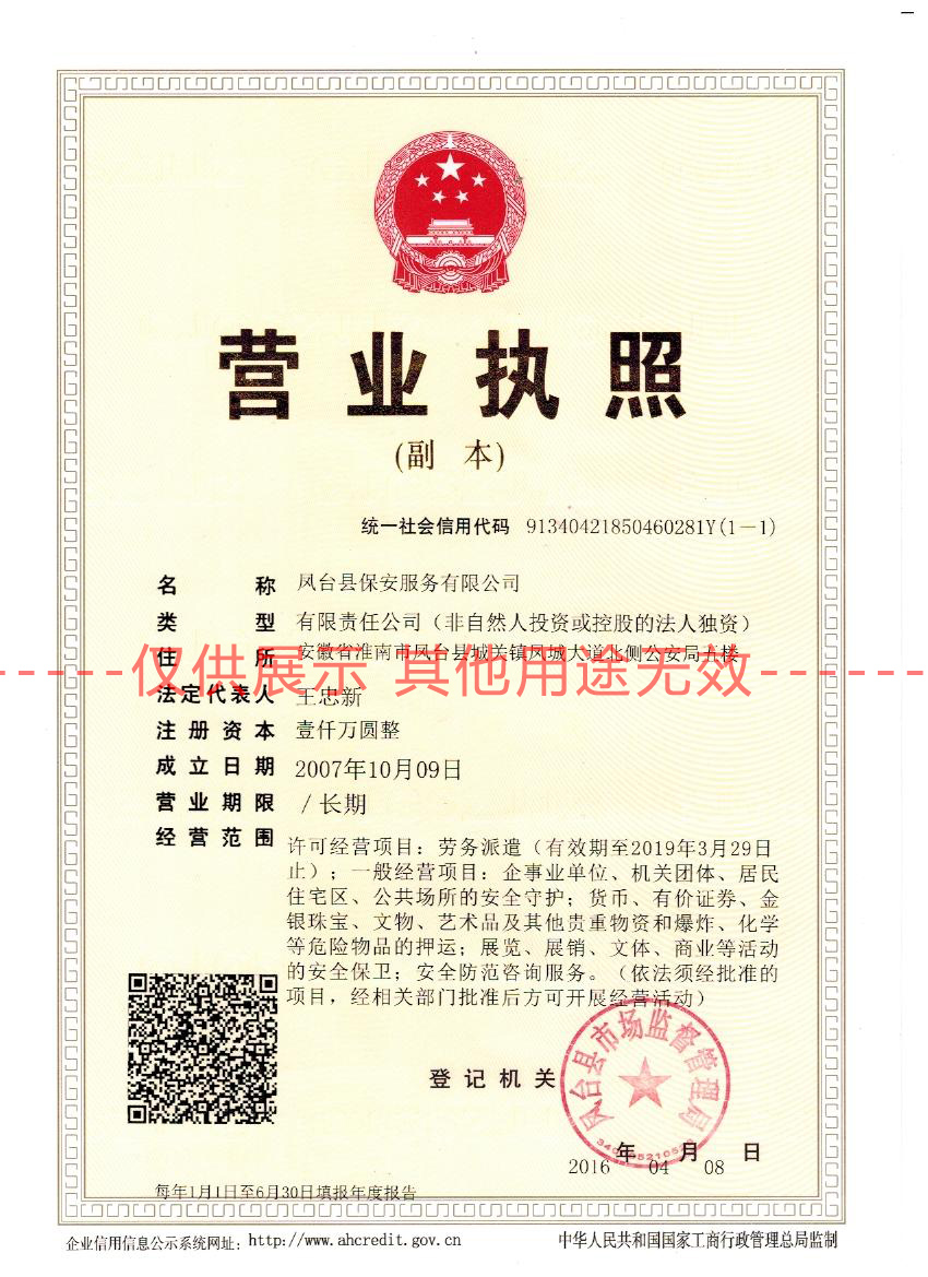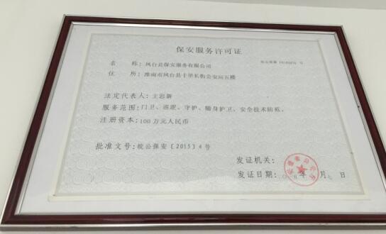 鳳臺(tái)保安服務(wù)有限公司成立于2007年,是經(jīng)鳳臺(tái)縣公安局行政許可的經(jīng)營(yíng)企業(yè),注冊(cè)資金1000萬(wàn)元,具有國(guó)企背景(安徽州來(lái)控股有限公司),更是一家朝氣蓬勃的年輕企業(yè)。公司主營(yíng)勞務(wù)派遣、保安服務(wù)、武裝押運(yùn)等。 >>了解更多